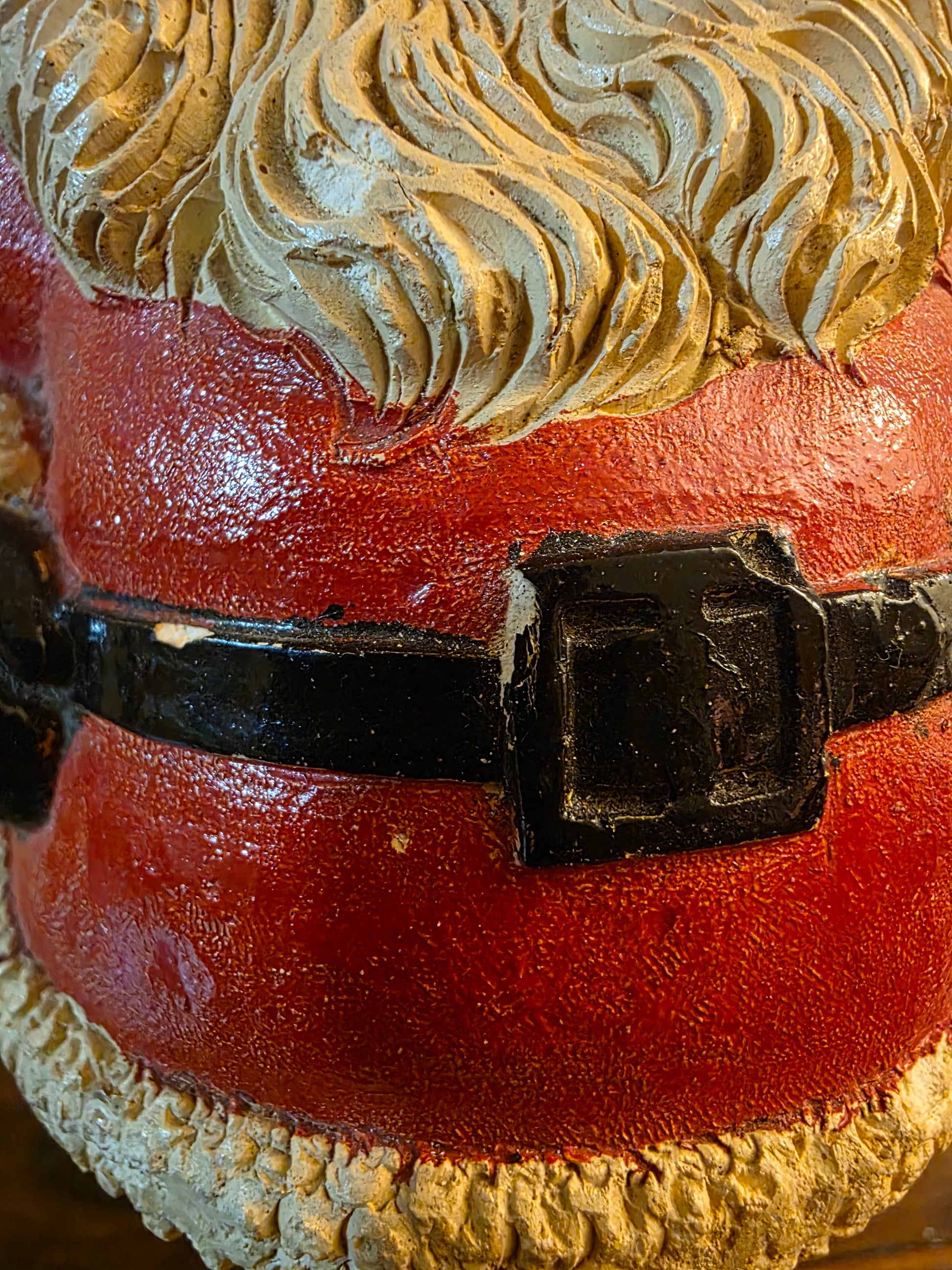 VIntage 1940s Santa Claus plaster chalk figure. This Santa Claus figure is very heavy and in good shape for its age with some minor wear around belt bucket. Please refer to pictures for more details.