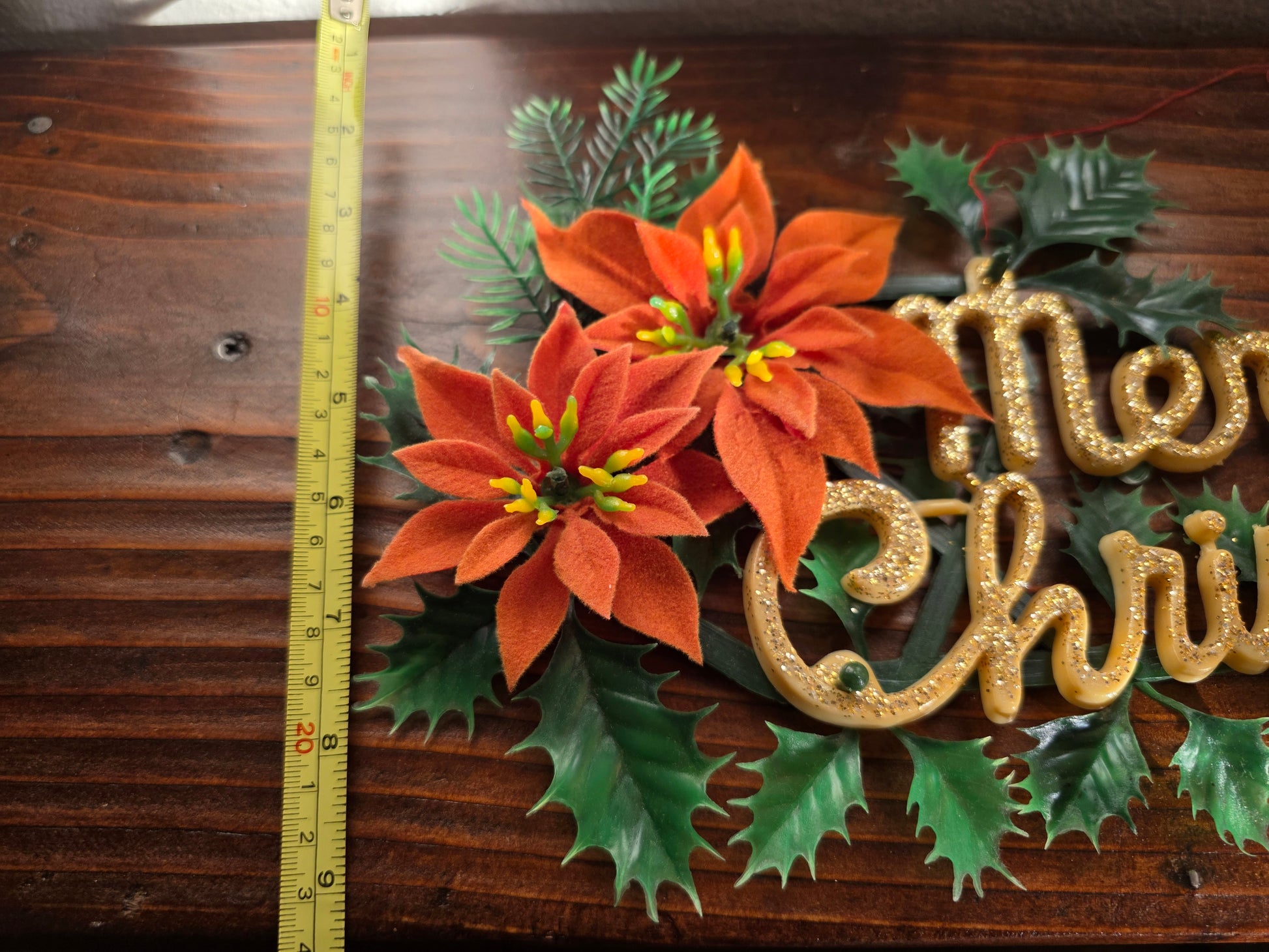 Vintage 1950's Merry Christmas Plastic Wall Hanging Poinsettia