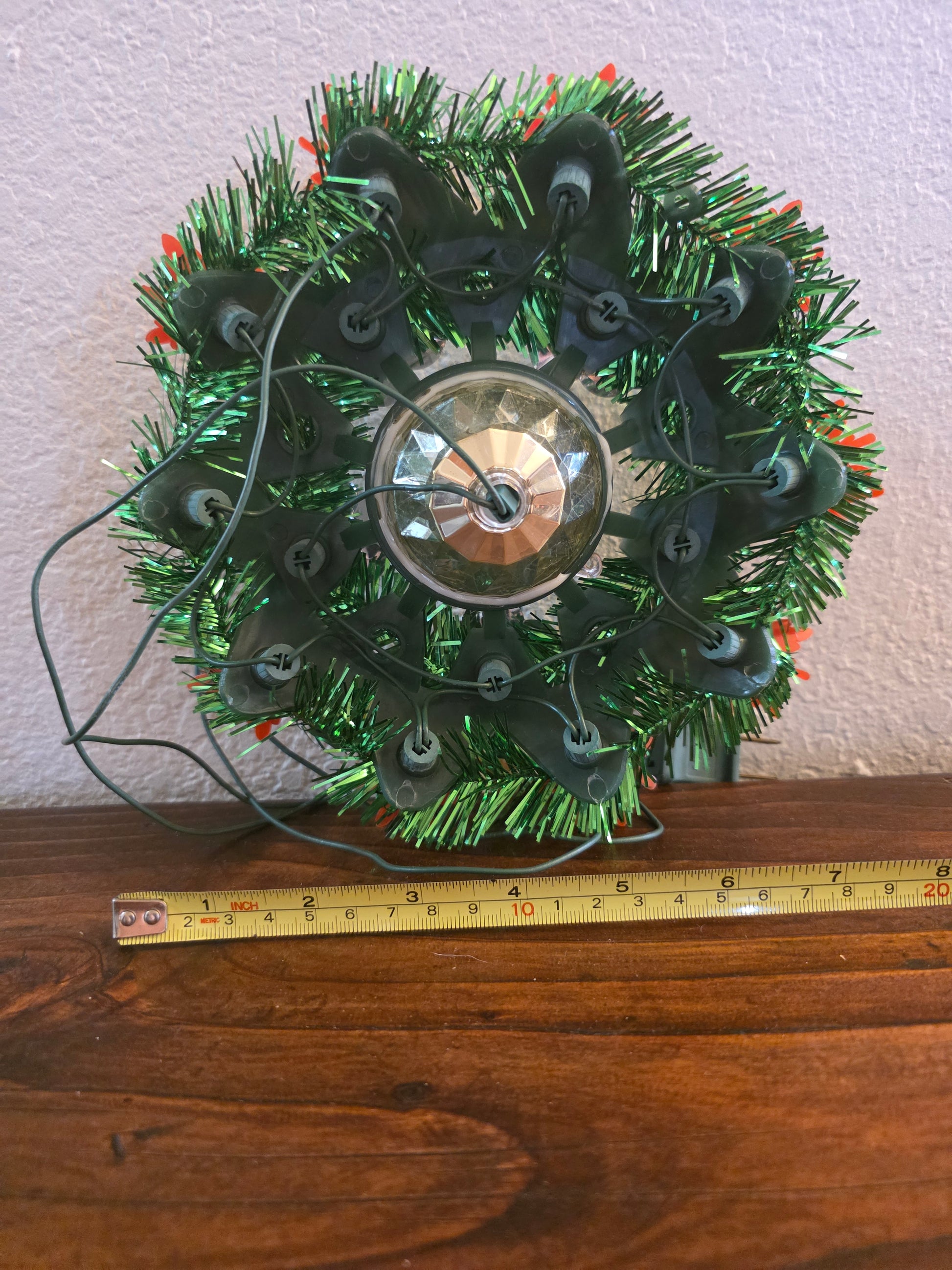 VTG 15 Light Christmas Poinsettia Tree Topper Green & Red